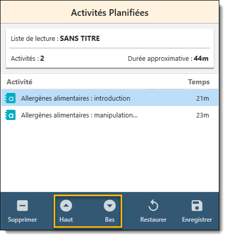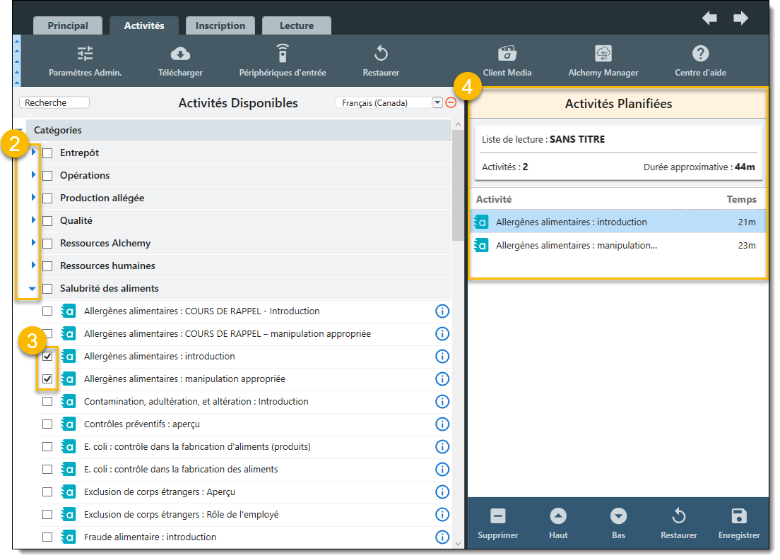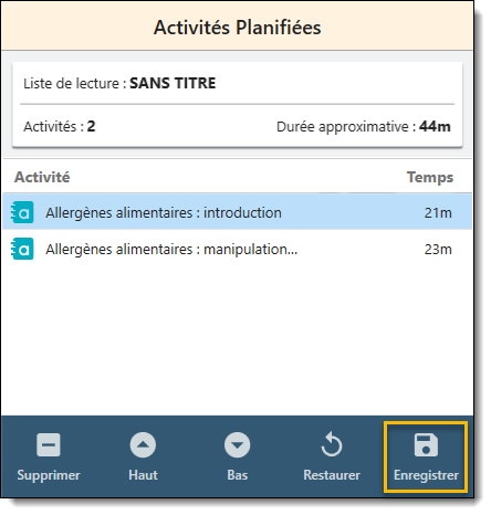 - Une fois que toutes les activités ont été ajoutées, sélectionnez Enregistrer