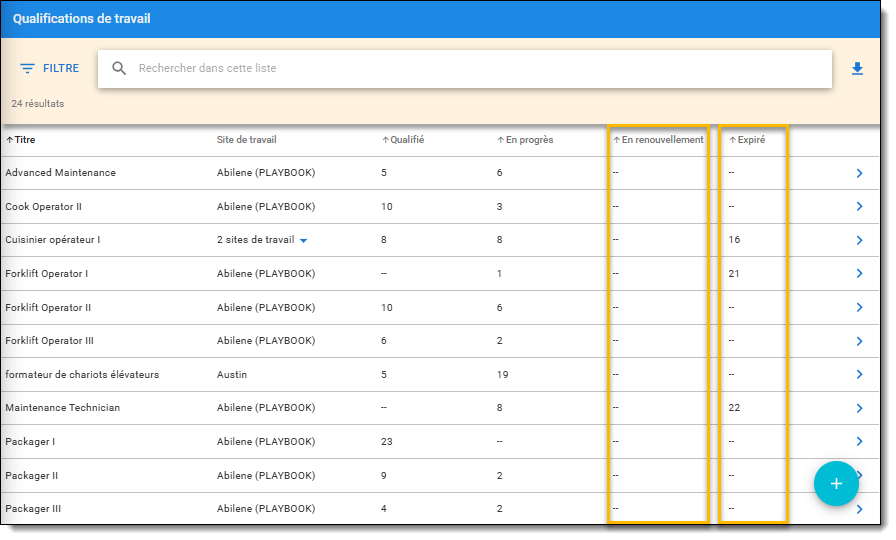 Pour plus d'informations sur l'ajout d'une expiration et d'un renouvellement à une qualification d'emploi, voir Comment créer et attribuer des qualifications d'emploi dans Manager.