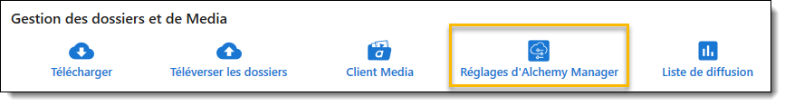 - Dans la section Gestion des doessiers et de Media, cliquez sur Réglages d'Alchemy Manager