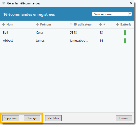- Ajout d'un utilisateur: choisissez une télécommande, sélectionnez le nom de la personne à ajouter et demandez à l'utilisateur d'appuyer sur le bouton d'enregistrement de la télécommande.