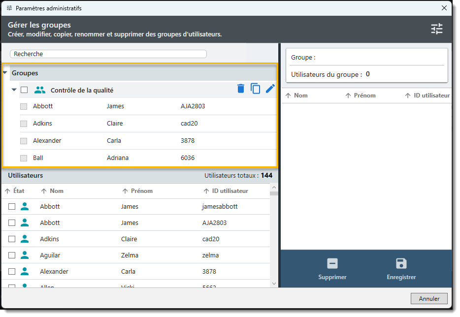 - Vous pouvez ensuite ajouter ou supprimer des utilisateurs du nouveau groupe