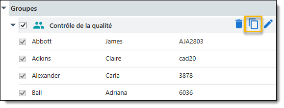 - Cliquez sur le bouton Copier le groupe à côté du groupe que vous souhaitez dupliquer.