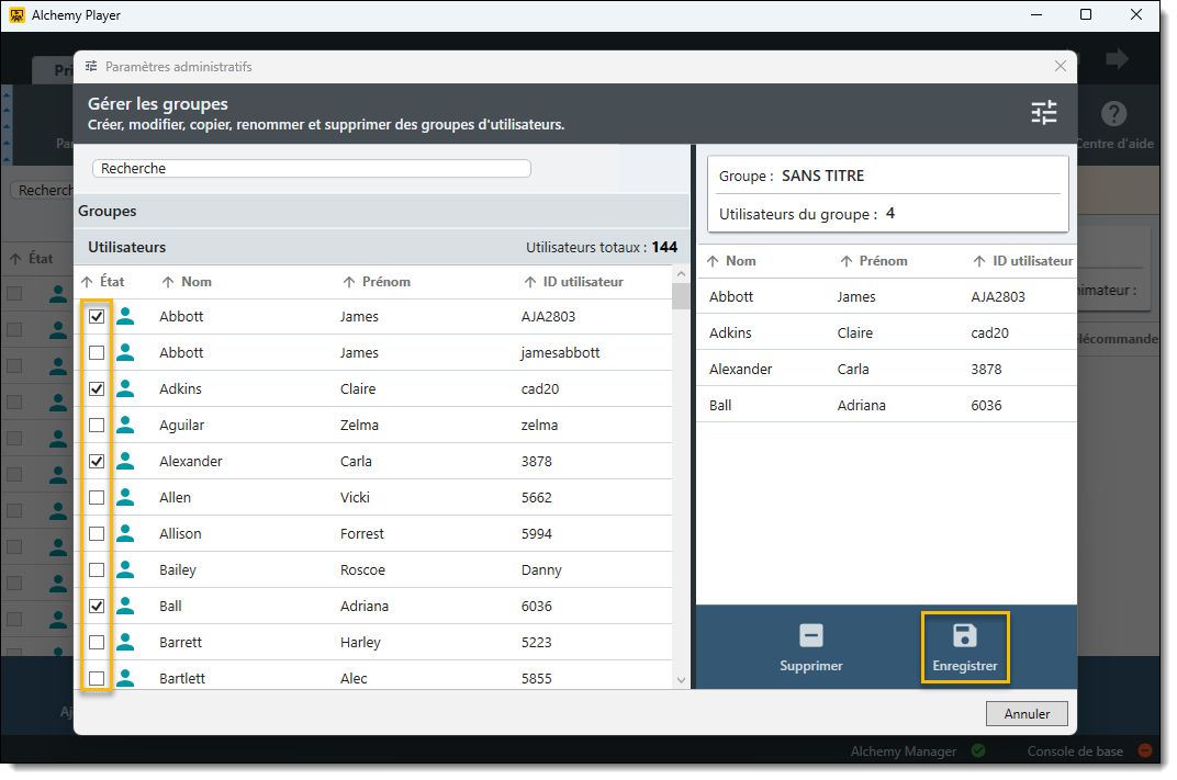 - Pour ajouter un utilisateur au groupe, cochez la case située à côté du nom de la personne dans la liste des utilisateurs