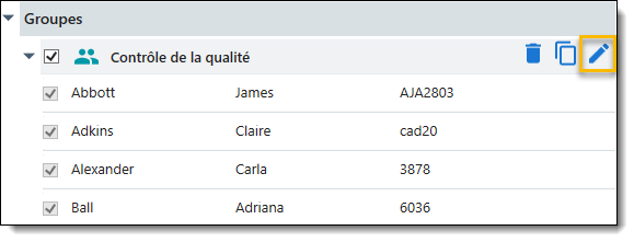 - Cochez la case située à côté du groupe que vous souhaitez modifier. Une liste de tous les utilisateurs du groupe apparaît dans la partie droite de la fenêtre