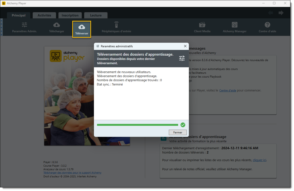 Exécutez une séance de formation ultérieure tout en étant connecté à Internet. Lorsque les enregistrements de cette séance sont téléchargés, tous les enregistrements contenus dans les fichiers de sauvegarde de Player sont également téléchargés.