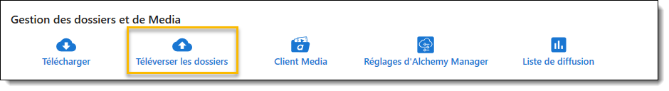 - Dans la section Gestion des dossiers et de Media, cliquez sur le bouton Téléverse les dossiers
