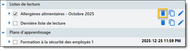 - Identifiez la liste de lecture que vous souhaitez supprimer