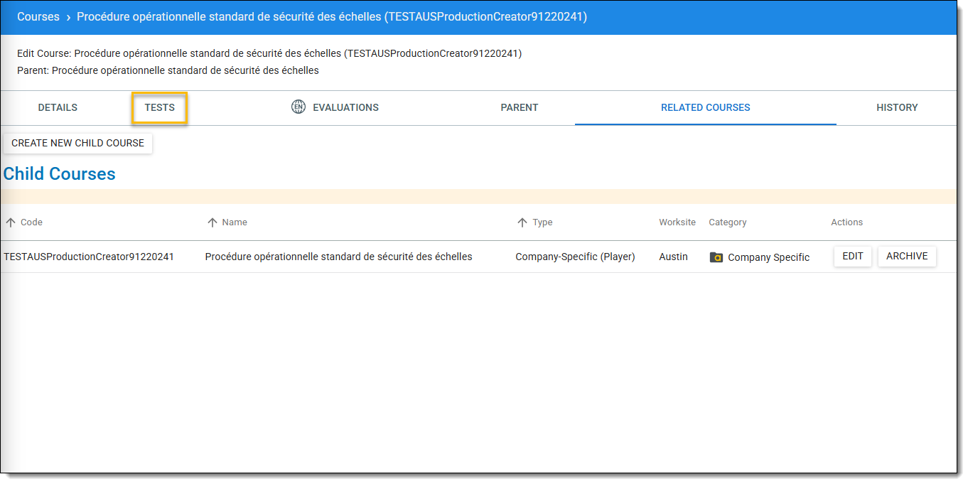 - Remarque: les tests ne peuvent être liés qu'à des fichiers spécifiques à l'entreprise (Player) ou à des cours spécifiques à l'entreprise (eLearning). Pour plus d'informations sur l'ajout d'un nouveau cours, voir l'article Ajouter un cours spécifique à une entreprise (lecteur) ou Ajouter des cours eLearning spécifiques à une entreprise. Le cours doit être ajouté à votre bibliothèque de cours avant de lier un test.
