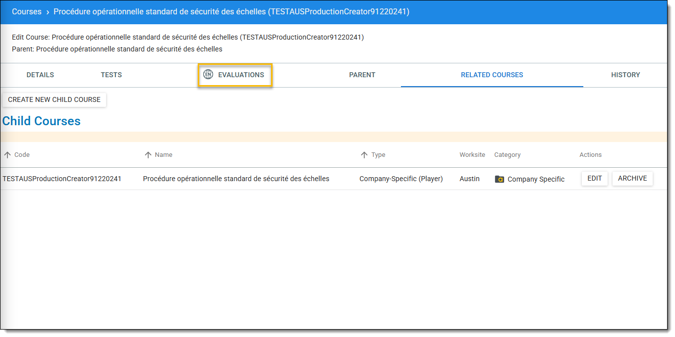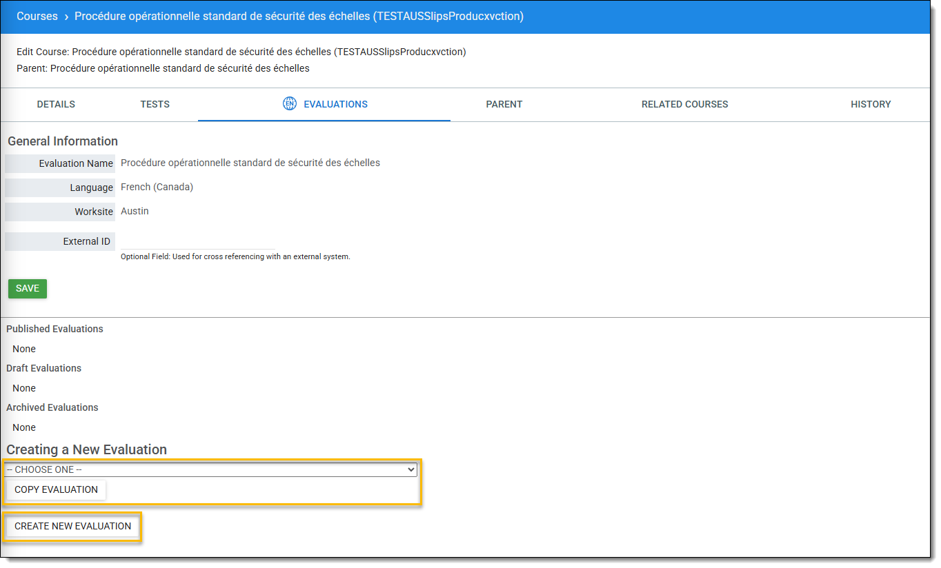 - Pour plus d'informations sur la création d'une nouvelle évaluation, voir Création d'une évaluation autonome