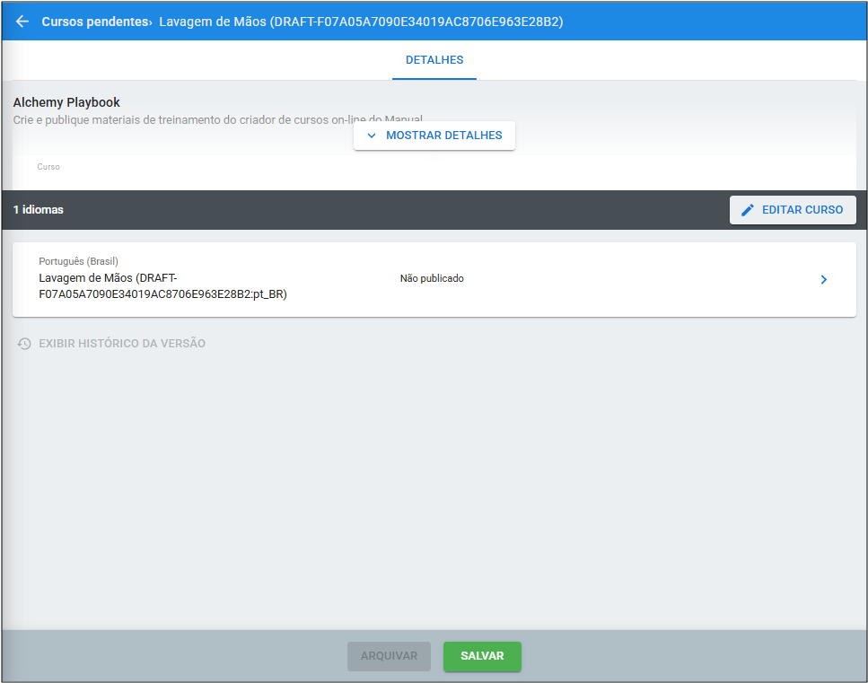 - Se optar por Salvar Rascunho, você poderá Editar o Curso do Playbook no Manager mais tarde.