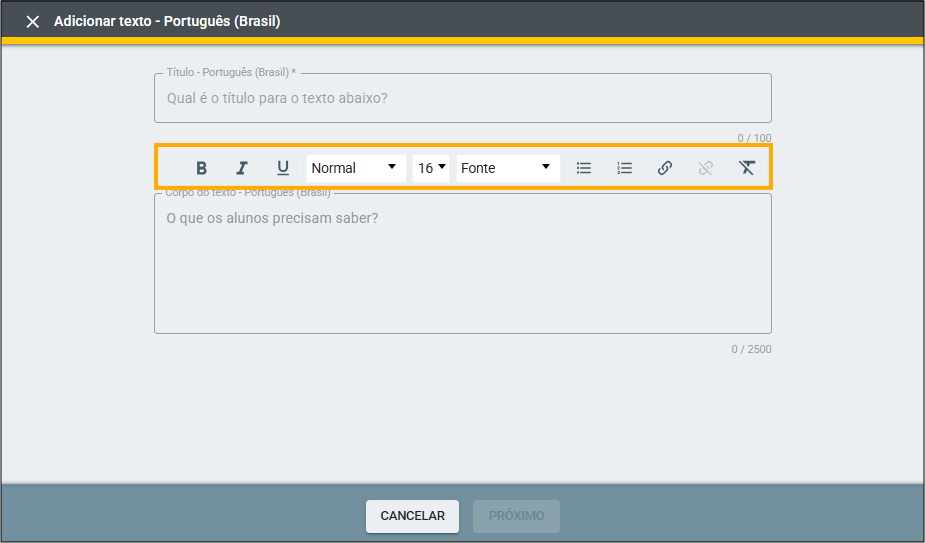 - Quando terminar de editar seu texto, clique em PRÓXIMO.