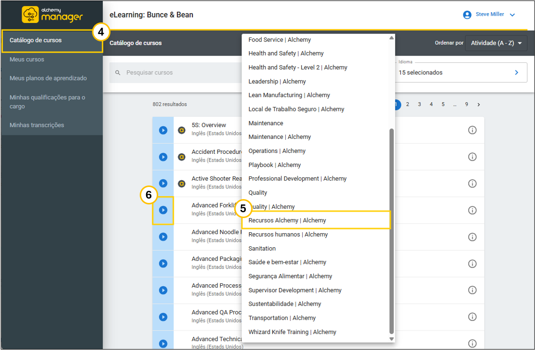 - Clique em Catálogo de Cursos no painel de navegação à esquerda.