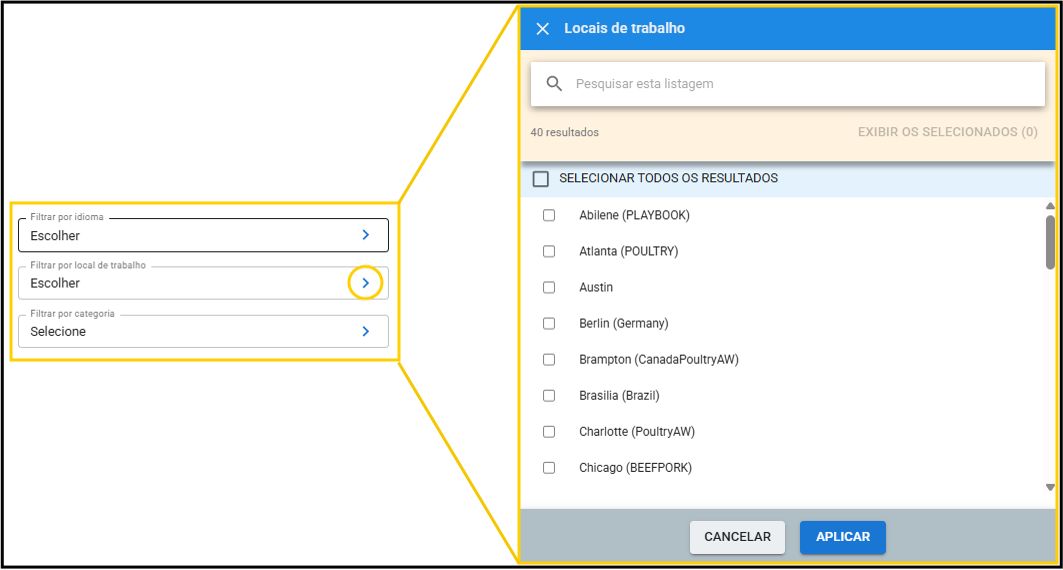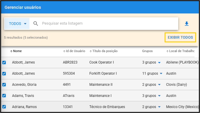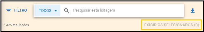 - Para visualizar apenas os registros selecionados, clique em Exibir os Selecionados, e a lista será atualizada.