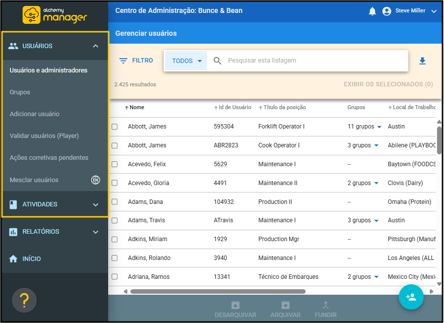 O eixo central da plataforma Intertek Alchemy é o Manager. Ele abriga a execução de certas funções regularmente. Seja gerenciando usuários, construindo e atribuindo atividades de treinamento, ou realizando buscas, este artigo é um guia para navegar pelas funcionalidades comuns que você encontrará no Manager.